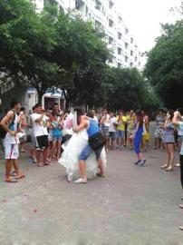 大四女生穿婚纱到男友宿舍楼下 大胆求婚