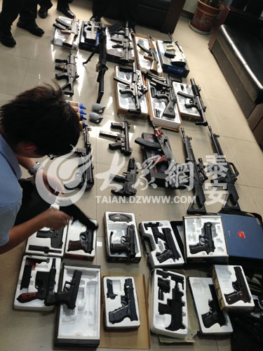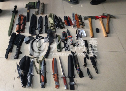 泰安警方查获大宗嫌疑仿真枪支和管制刀具