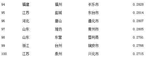 据了解,该名单是根据基础条件、运行绩效、发展活力3个要素和14个具体指标的县域工业经济发展水平评价指标体系而确定的,并根据全国1719个县(市)的统计数据测算出各县(市)工业经济发展水平综合指数,排名前100名的全国工业百强县(市)即为2014年中国工业百强县(市)。