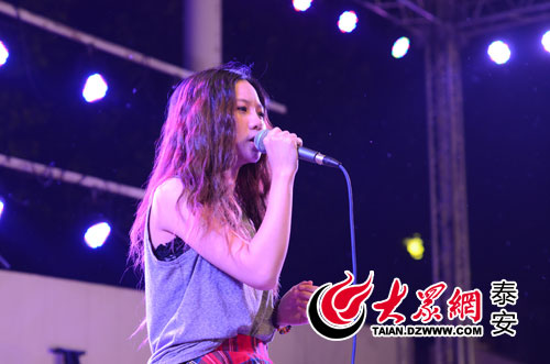 美丽的女歌手唱功不俗。(见习记者 陈广辉 摄影报道)