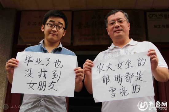 近日,山东农业大学16个学院党委副书记,与2014届毕业生以答题板互动的形式拍照留念,简短的话语诉说师生真情。学校领导与毕业生互动卖萌,一改平时严肃的形象,让不少学生感到吃惊,许多学生表示原来学校领导老师也可以“萌萌哒”!