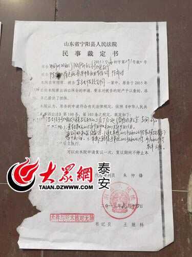 宁阳县人民法院对中星面业有限公司开出的民事裁定书