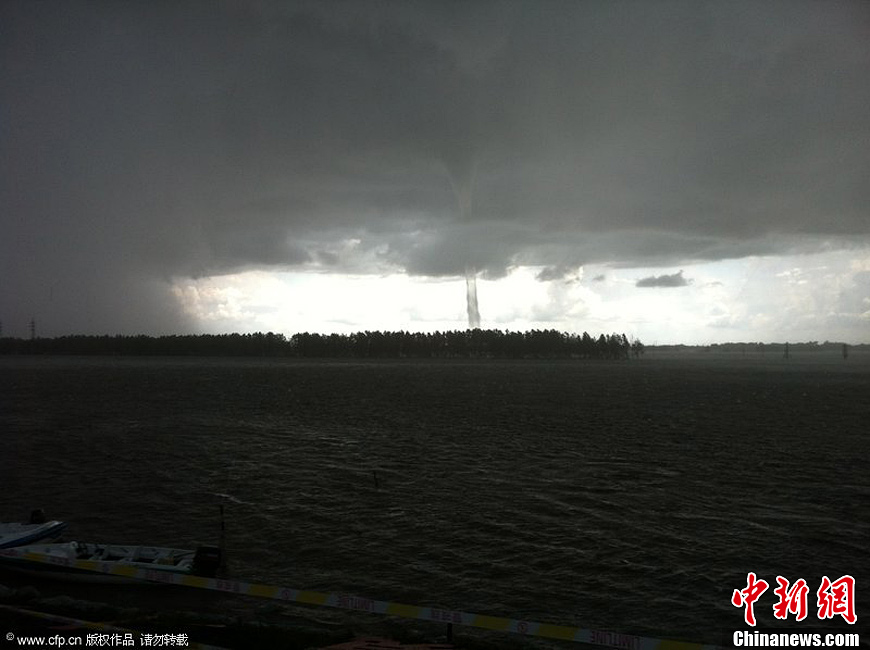 8月19日,黑龙江大庆,松花江大庆-肇源段江面上出现了小型龙卷风,形成了“龙吸水”现象,随后附近降下最大约有鸽子蛋大小的冰雹,持续大约十分钟。