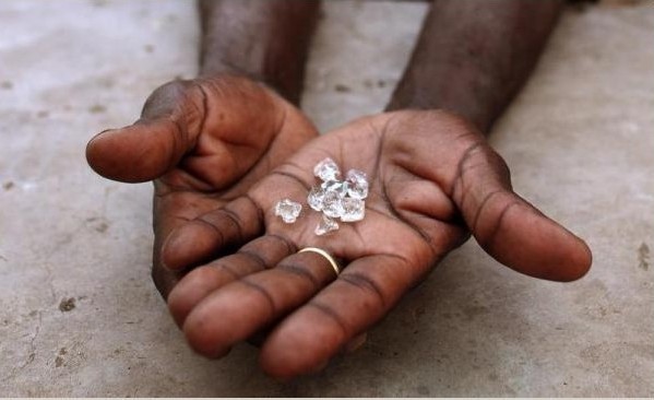 2010年9月19日,津巴布韦边境附近,马尼卡,一个来自津巴布韦的非法钻石经销商在向人们推销钻石。