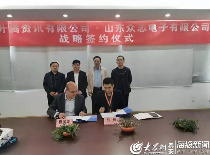 福建星网锐捷通讯股份有限公司总经理阮加勇、升腾资讯副总裁张辉和产品部总监陈木土、省派民营企业高质量发展服务队泰安二队领导,山东众志电子董事长李松和与副总经理、技术总监曹国梁等参加签约仪式。