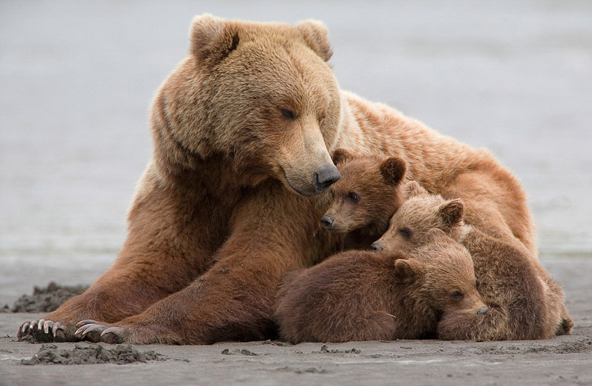 据英国《每日邮报》4月14日报道,在美国阿拉斯加的卡特迈国家公园(Katmai National Park),摄影师汉克·佩里(Hank Perry)拍摄到了超级温馨的一幕:灰熊妈妈和它的三个孩子相互依偎,为它们挡风遮雨,画面非常有爱。
