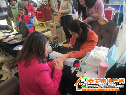 美甲师为女业主免费美甲 美甲活动现场也聚集了不少人气,为庆祝三八妇女节,恒大城特邀来自专业美甲机构的数名美甲师们为到场女业主免费美甲。在美甲的过程中,美甲师更悉心传授美甲的技巧及要点,让每位女业主在扮靓的同时,更轻松获得美甲知识。
