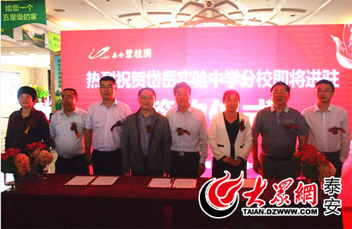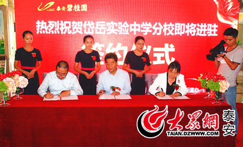 本次签约学校仪式受到社会各界的广泛关注。岱岳实验中学始建于1960年,学校先后被确立为"全国十一五课题实验基地"、"山东省探究教学实验基地"、"山东省校本培训示范学校"、 "山东省艺术教育示范学校"等荣誉称号。