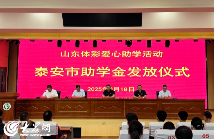 8月18日上午,泰安英雄山中学校园内爱心涌动,“山东体彩爱心助学活动”泰安市助学金发放仪式在此温暖举行。泰安市体育局党组书记、局长孔凡洪,市体育局党组成员、二级调研员冯遂杰,市教育局总督学王亮,体育彩票泰安分中心主任郑成军等出席活动,共同为受助学生代表颁发承载希望的助学金。仪式由泰安英雄山中学主要负责人李金山主持。