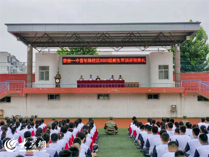 泰安一中青年路校区举行2025级新生军训开训典礼(胡冠军 供图)