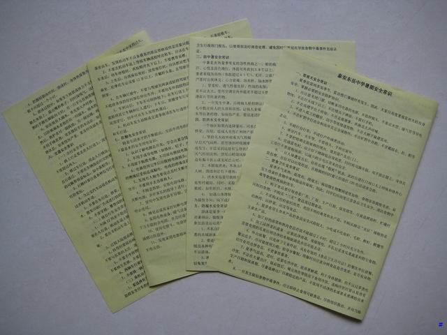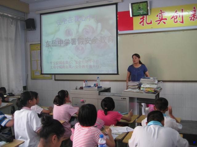 根据区教育局统一部署,为切实提高每位学生的防灾减灾和紧急情况下自护自救的能力,确保全体师生过一个平安、快乐的暑假,泰安东岳中学认真学习领会区教育局相关文件精神和要求,为每一位同学印发了《泰安东岳中学2013年暑期安全常识》和《致家长的一封信》,要求各班级根据所发材料,在放假前上好一堂暑假安全教育课,对全班同学进行安全教育,强化夏季安全意识,有针对性地采取措施,确保自身安全。同时要求学生将《暑期安全常识》带回家,让家长一并学习。