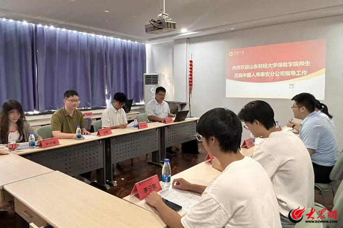 为推动产学研深度融合,探索商业保险助力老龄保障的创新路径,2025年7月4日上午,山东财经大学保险系张腾导师携师生调研团队走进中国人寿保险股份有限公司泰山区支公司,围绕“银龄安康工程”实施成效及老年商业保险发展现状展开深度调研。双方聚焦政策落地难点、产品创新策略、行业前沿趋势等核心议题,通过案例研讨、数据共享与经验交流,共同探索构建多层次、多元化的老年保障体系。深入探索商业保险服务老龄社会的创新路径。