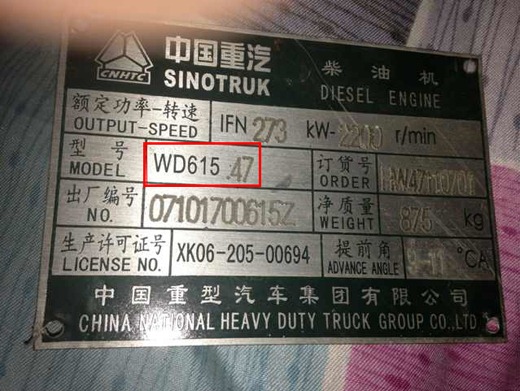 另一位车主任超向记者出示了他的发动机铭牌,上面显示,他购买的柴油发动机型号为WD615.47。而根据中国重汽官方网站上公布的数据,这款WD615.47的排放标准为欧II,也就是国II标准。