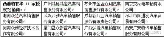 根据其官网上的信息,目前为止西雅特在华共有11家授权经销商和11家授权服务商,后者多为大众品牌进口车经销店,不属于西雅特品牌授权店。这些经销店全部集中在二三线城市,在北京上海等一线城市没有分布。