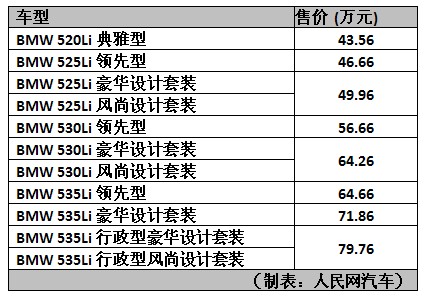 宝马新款5系Li以上市 市场价仅售43.56万元起