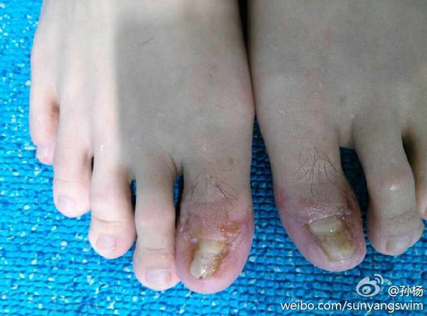孙杨微博晒受伤双脚:很难受 运动员心酸冷暖自知