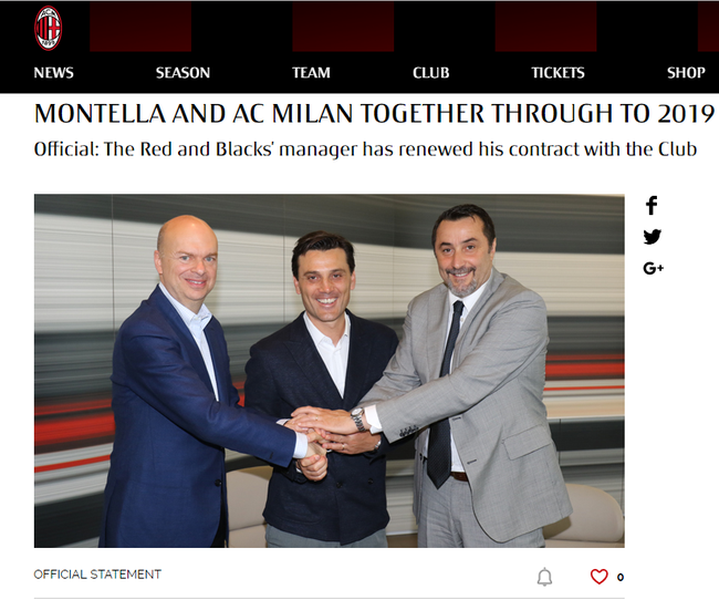 北京时间5月30日,AC米兰官方宣布与主帅蒙特拉续约,双方的合同将延长到2019年6月30日。