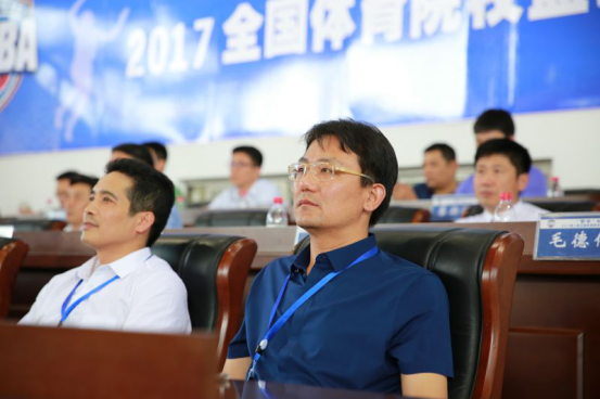 隆胜军代表国家体育总局科教司致辞。他指出,党中央、国务院高度重视体育工作,特别是党的十八大以来,习近平总书记对体育工作多次发表重要讲话、作出重要批示和指示,成为推动新时期体育发展的强大动力。随着全民健身、体育产业等上升为国家战略,体育与卫生事业深度融合,成为建设“健康中国”的重要内容。全社会参与体育的热情日益高涨,体育在实现中华民族伟大复兴中国梦和全面建成小康社会中的作用进一步显现。他强调,目前我国的集体球类项目水平较低,与体育强国建设的总体目标仍不相适应。篮球作为三大球之一,具有广泛的群众基础,历史上有过辉煌的成绩,成为了体育总局深化体育改革的突破口。新一届中国篮球协会的改革,体现了发展篮球运动必须充分依靠社会、依托市场,完善和发挥举国体制优势的理念。体育院校作为我国体育事业发展的重要力量,专业特色、人才优势突出,科教司希望通过社会化、市场化的办赛理念来打造高水平的品牌赛事,改革创新人才培养模式,提升运动训练水平和人才培养质量,形成人才辈出、竞赛繁荣的新局面,推动全国体育院校的改革和发展,为我国篮球项目、体育事业发展做出积极的贡献。他表示,2016年,山东体育学院响应科教司“一校一品牌、一校一赛事”的号召,成功举办首届全国体育院校篮球联赛;今年又将联赛再次改革升级,无论形式和内容都有新的突破。科教司向赛事发起和精心筹备比赛的山东体育学院、国家篮球学院和山东泽辉体育文化管理有限公司,以及独家商务运营合作伙伴北京辉耀百年体育文化发展有限公司,比赛冠名赞助商山东雲亭食品有限公司等表示衷心的感谢!相信有对篮球热爱的这种情怀和精神,这个赛事一定能勇立潮头,红红火火,创造辉煌!