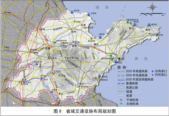 建设海陆空联动的国际物流运输体系。提升山东省对40外门户地位。济南、青岛、烟台机场为干线机场,威海、济宁、潍坊、临沂、东营、泰安等13个机场为支线机场,共同构建开放的航空运输体系。强化青岛港口国际集装箱枢纽地位,联合烟台、日照等港口建设环渤海南部、黄海的物资进出口和国际贸易基地。