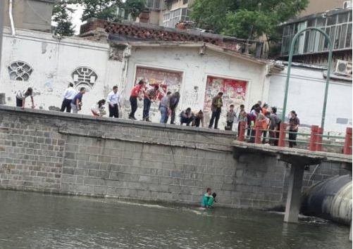 9岁男孩掉奈河 "绿衣哥"橡胶坝跳下热心救人