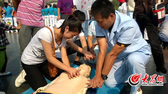 山东开展世界急救日宣传 市民街头学急救