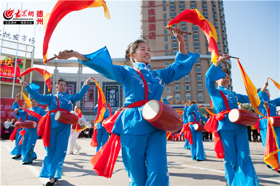 10月28日,德州市全民广场舞健身锣鼓大赛开赛,共吸引200多支鼓队10000多人参加,德州市老年体育协会秘书长崔勇说,现在德州每年都有广场舞大赛,明年德州市体育局还准备举办一场覆盖市、县、乡三级的大型广场舞大赛。