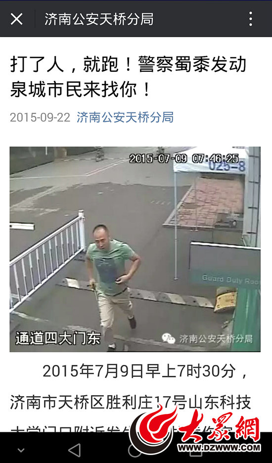 男子在早餐摊持械伤人 济南警方微信征集万条线索擒凶