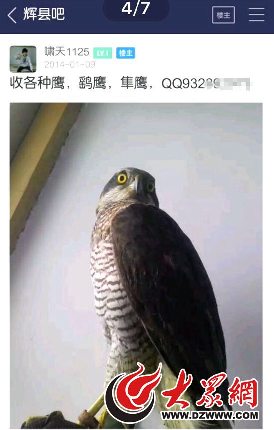 同时,闫啸天所在的“河南鹰猎兴趣交流群”及贴吧,也被怀疑在这背后有一个捕猎、收购、倒卖国家保护动物的“一条龙”组织。