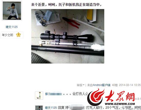 网友扒出的用户“啸天1125”在贴吧发布自制枪支的信息。(图片来源于网络)
