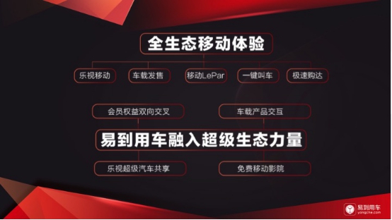 比如:通过和乐视手机EUI深度整合,不打开专车APP也可以叫到车;在乘坐途中还能享受乐视提供的娱乐内容;坐着易到专车去欣赏每一场乐视的赛事、音乐会和电影;在商城购物的时候还得到乐视与易到为双方用户准备的馈赠……