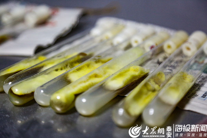 庞献伟今年55岁,是泰安市林科院森林保护研究所的所长,2月2日,大众网·海报新闻记者见到他的时候,他正在实验室里查看培养的菌种生长情况。短短的头发,褐色的皮肤,脸上的皱纹显示出岁月的痕迹,因为庞献伟的工作性质,他需要常年在外,无论是炎热多雨的夏季还是风雪漫天的冬季,只要林木和果树出现病虫害,他就需要前往取样调查。“这一年我们待在办公室的时间很短,咱们泰安林果业发展的不错,苹果、核桃、栗子、大樱桃、桃子是我们的主要产品,提升果实的产量和质量离不开防治病虫害。我们主要是出去采集病虫害的样本,然后进行研究。”庞献伟说。他们主要研究的方向是植物源农药,就是从植物、中草药中提取活性成分制作杀虫剂。庞献伟告诉记者,以前我们使用的农药毒性较大对生态环境有一定的影响,而现在他们研究的生物制剂,基本没有毒性,他最引以为豪的就是他的团队研制出了松柏类树木蛀杆害虫的植物源引诱剂,成虫闻见这种气味就会被吸引,利用其假死的特性用捕杀器将其彻底消灭,这种方法不会对环境造成任何影响。