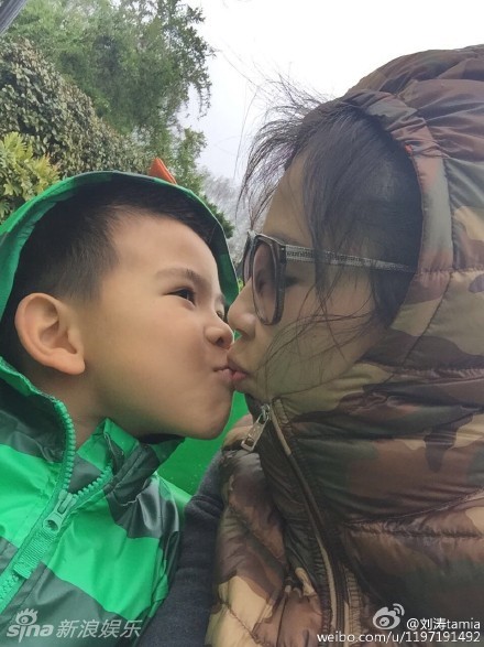 组图:刘涛一家游迪士尼 儿子撒娇亲嘴老公卖萌